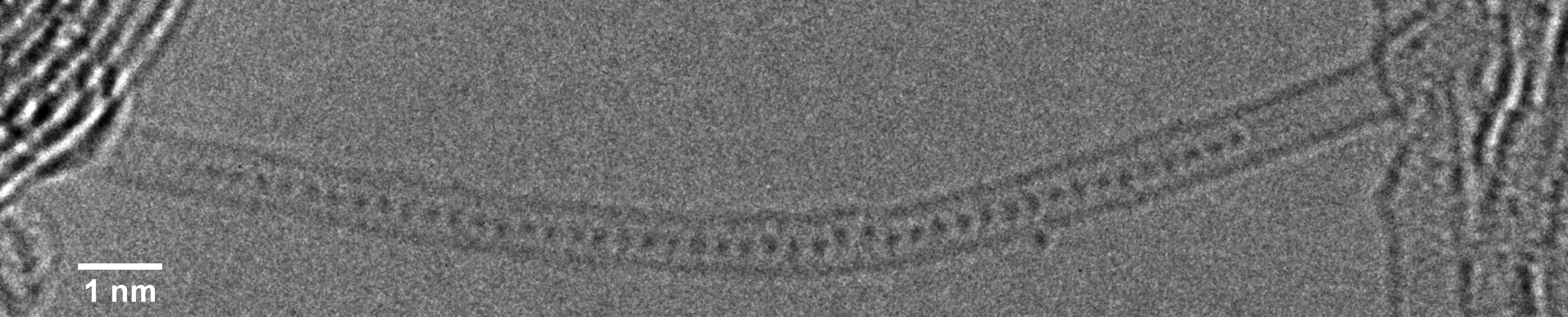 Encapsulation of technologically important materials in ultranarrow templates to form 1D atomic chains and motifs with tunable properties and enhanced stability.